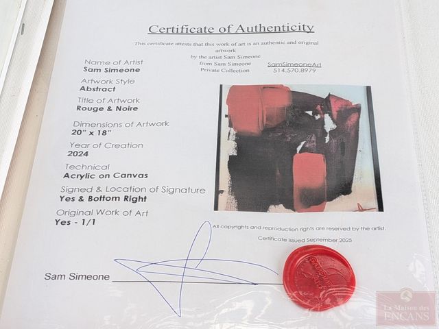 Lot # 3 - Sam SIMEONE- Acrylique sur toile signée, mesurant 20x16 pouces