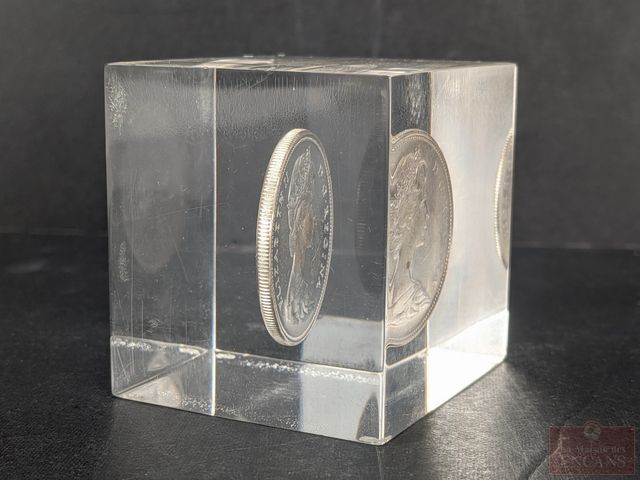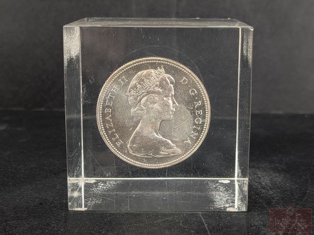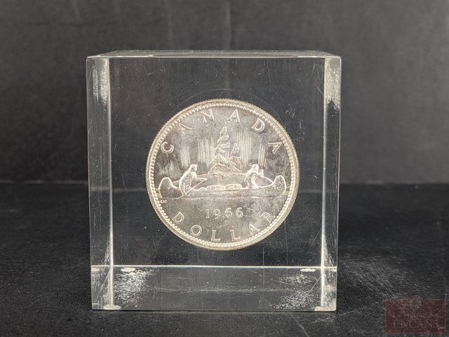 Lot # 126 - Pièce canadienne d'un dollar 1966 en argent, dans un bloc de lucite SOLD