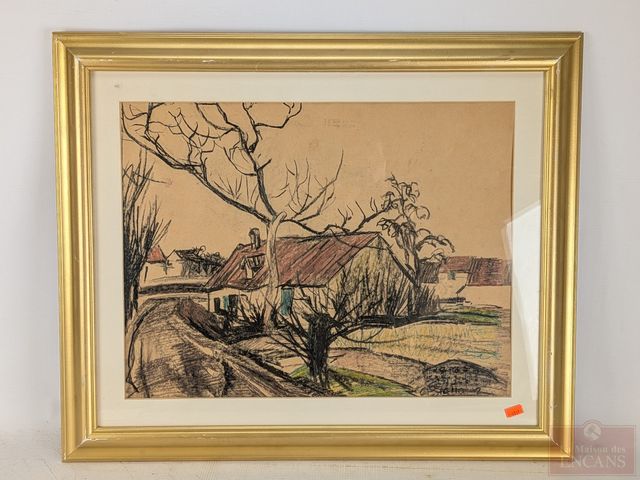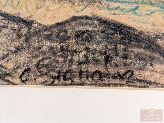 Lot # 57 - Claude GIANOLLA- Pastel sur papier signé, mesurant 14x17.75 pouces et titrée La vieille grange