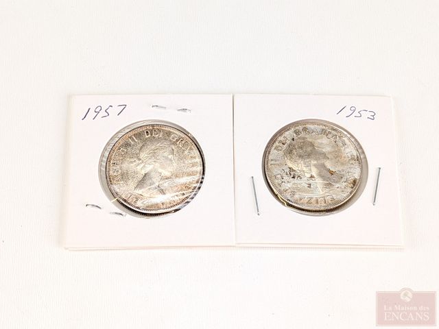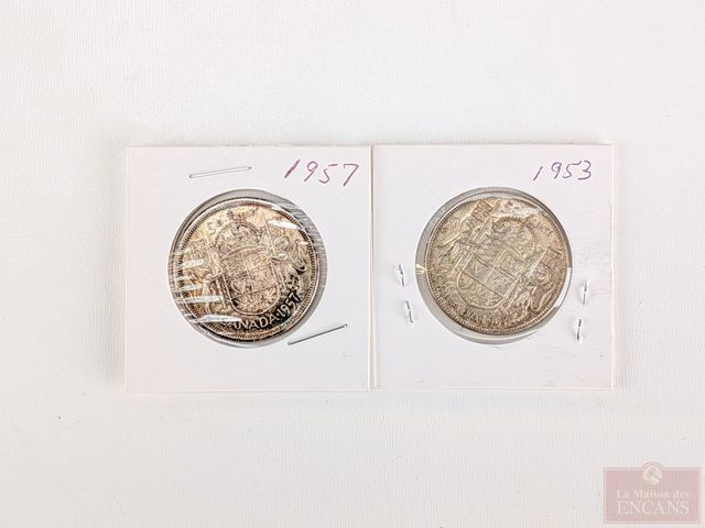 Lot # 84 - Deux pièces canadiennes de cinquante sous 1953 et 1957 en argent