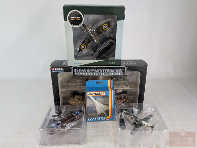 Lot # 165 - Lot de modèles-réduits comprenant avions, dont Concorde Air France, ainsi qu'un assortiment commémoratif de tanks Corgi 60eme anniversaire de D-Day SOLD