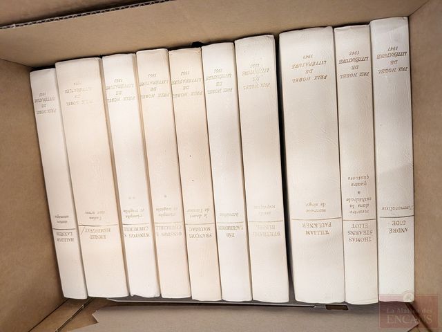 Lot # 49 - Gros lot de livres des Prix Nobels de littérature avec couverture illustrée par Picasso, édition Rombaldi sur vélin blanc du Moulin de Saint-Roch, dont Hemingway, Churchill, Faulkner, Kipling, Albert Camus et autres