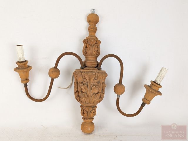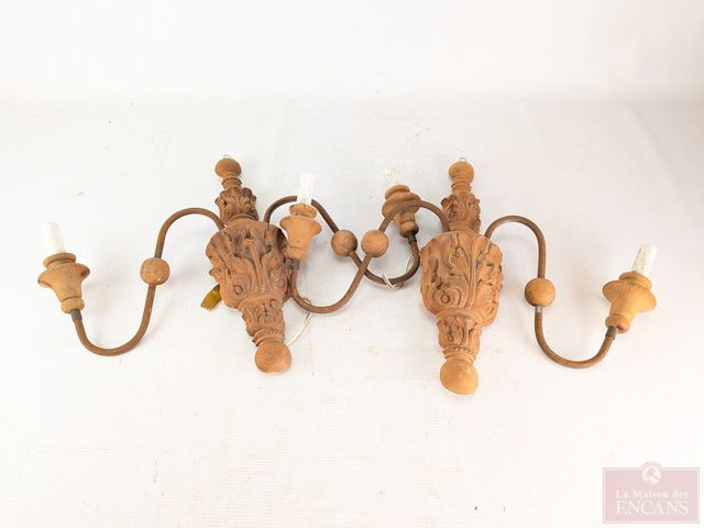 Lot # 9 - Deux appliques murales électrifiées de style Louis XVI, sculptées sur bois et mesurant 16 pouces de hauteur