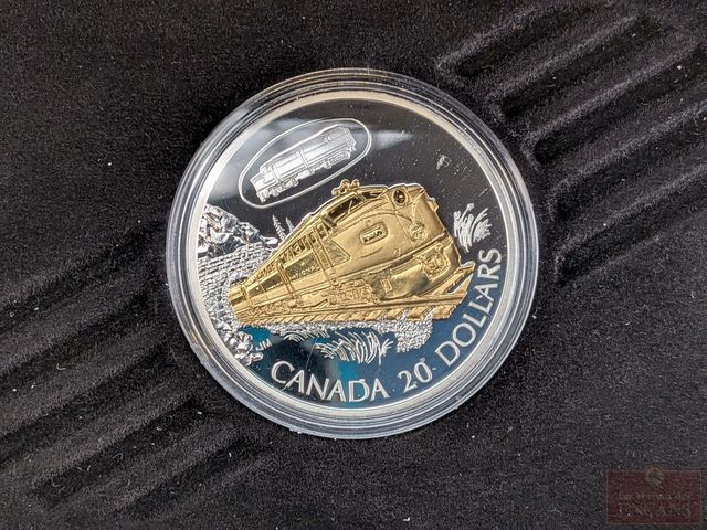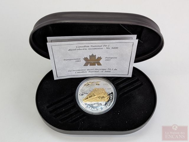 Pièce canadienne de vingt dollars La locomotive diesel électrique FA-1 du Canadian National - n 9400 en argent sterling, avec certificat, dans son coffret