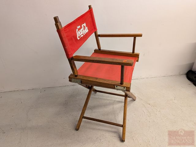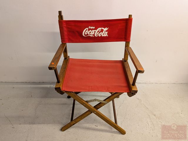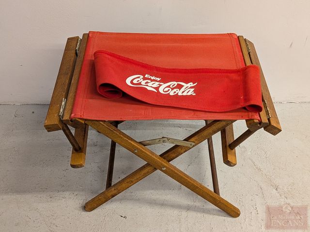 Lot # 50 - Chaise pliante vintage Coca-Cola en bois et tissu, mesurant 24 pouces de largeur