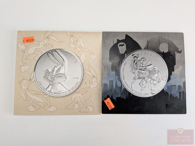 Lot # 63 - Deux pièces canadiennes de vingt dollars en argent pur 9999 Batman vs Superman 2016 et Bugs Bunny 2015, encapsulées, sans taxes