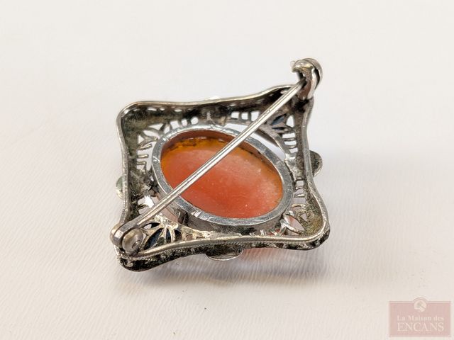 Ancien camée monté sur broche en argent, datant du 19eme siècle et mesurant 1.25 pouces de largeur
