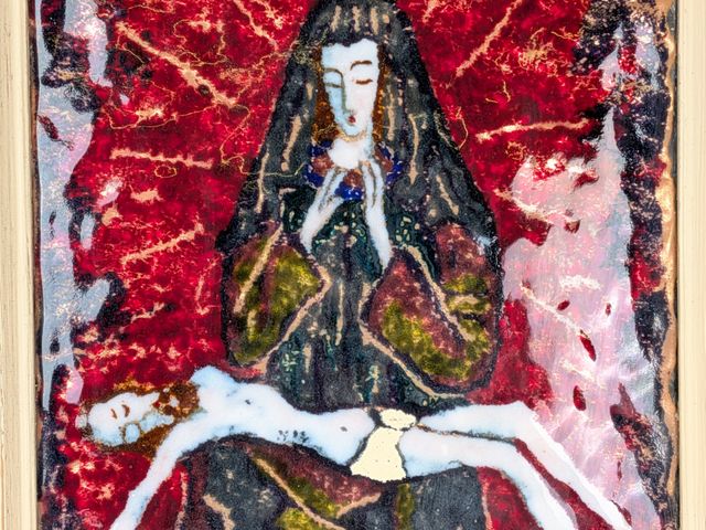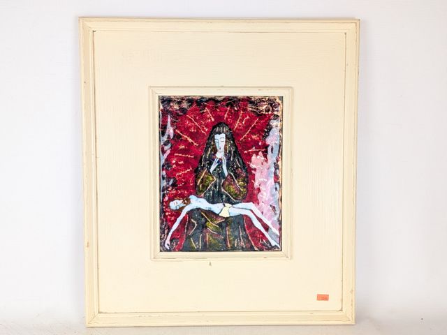 Lot # 7 - Marcel DUPOND(premier artiste émailleur du Québec)- Émail sur cuivre représentant la vierge et le Christ, mesurant 9.5x7.5 pouces SOLD