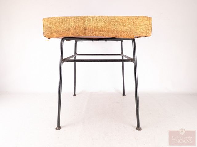 Tabouret mid-century avec pied en acier et son recouvrement d'origine, mesurant 18.5 pouces de hauteur