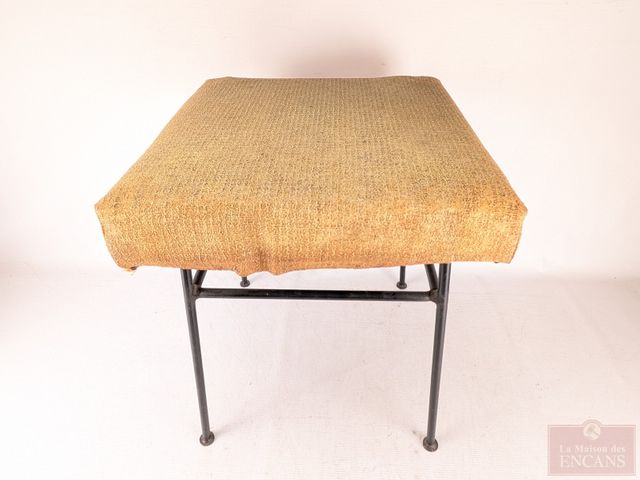 Lot # 9 - Tabouret mid-century avec pied en acier et son recouvrement d'origine, mesurant 18.5 pouces de hauteur