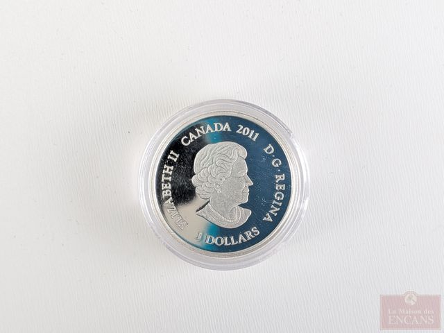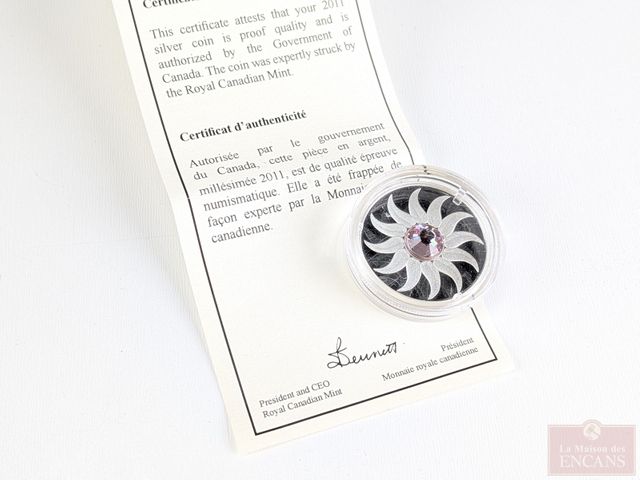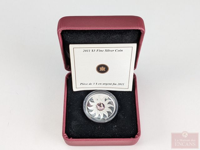 Lot # 225 - Pièce canadienne de trois dollars en argent pur 9999 avec cristal Swarovski, encapsulée, dans sa boite avec certificat, sans taxes SOLD