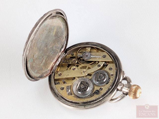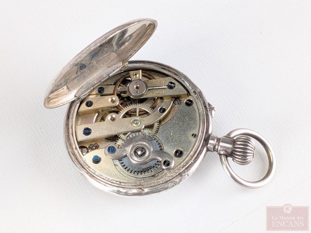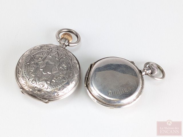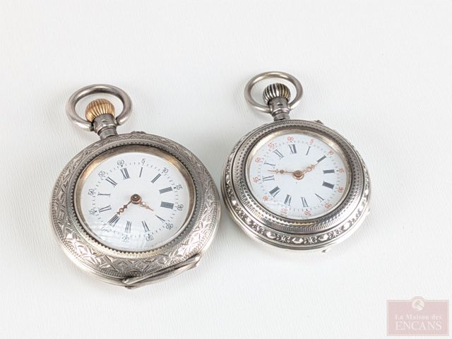 Lot # 196 - Deux montres de poche avec boitiers en argent 800, fabrication suisse, datant de la fin du 19eme siècle, la plus grande mesurant 2.25 pouces SOLD