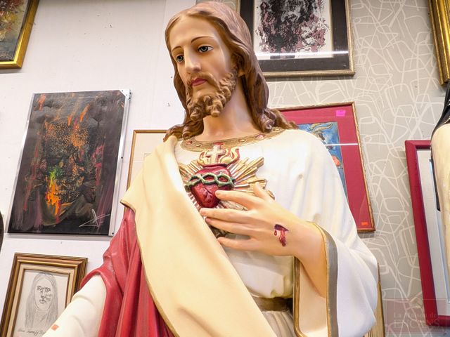 Lot # 185 - Grande sculpture en plâtre représentant Jésus Sacré-Cœur, mesurant 67 pouces de hauteur (très lourde, mains à réparer) SOLD