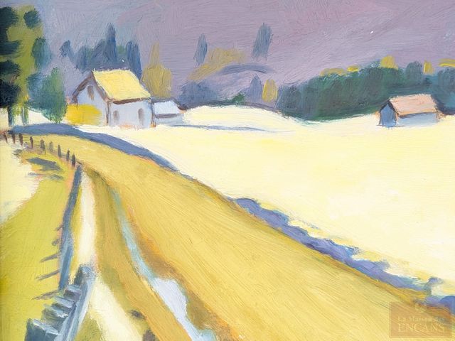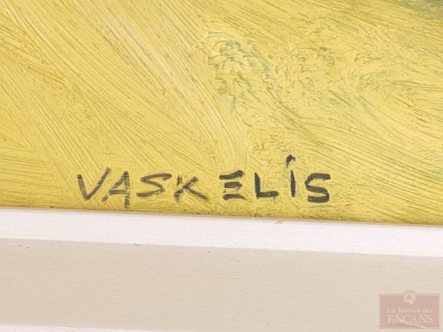 Lot # 35 - VASKELIS- Huile sur panneau signée, mesurant 8x10 pouces et titrée Chemin de la Rouge, Québec