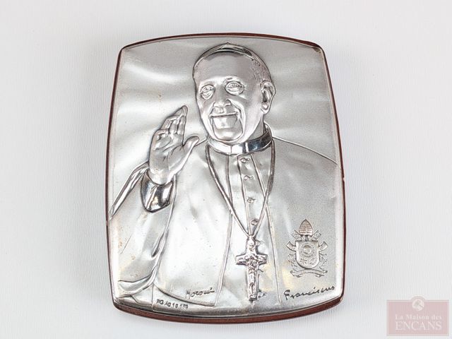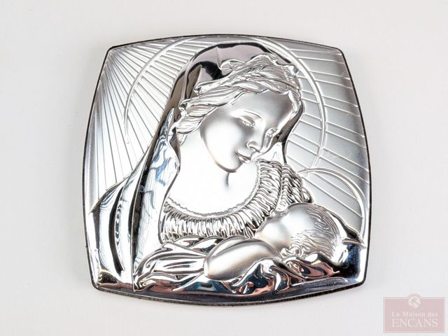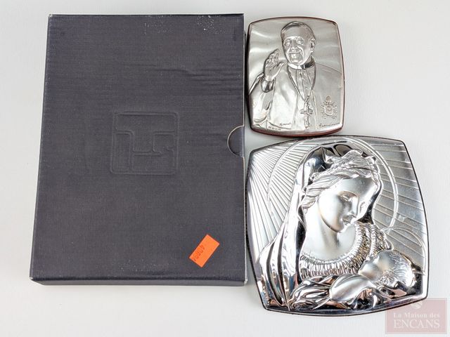 Lot # 63 - Deux œuvres sur plaques d'argent repoussé, la plus grande représentant la Vierge et mesurant 5 pouces