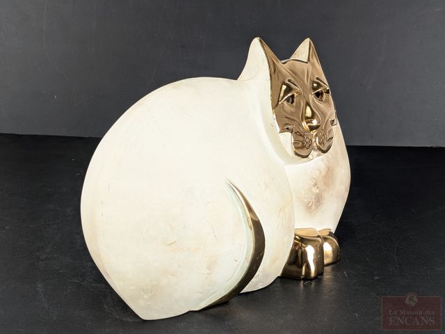 Lot # 39 - PELLETIER- Porcelaine signée, représentant un chat et mesurant 10 pouces, avec son étiquette de l'atelier du Vieux Cap-Rouge, Québec