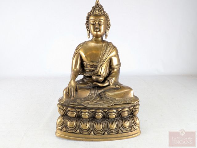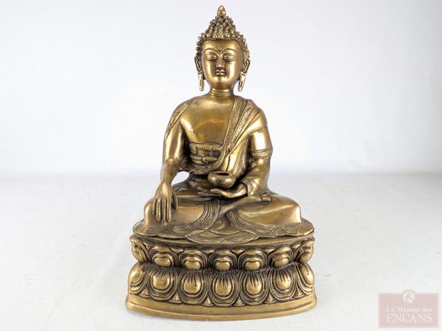 Grand Bouddha en bronze mesurant 16 pouces de hauteur