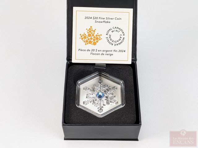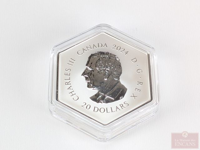 Pièce canadienne de vingt dollars 2024 en argent fin 9999, pesant plus d'une once, dans son coffret avec certifcat, sans taxes