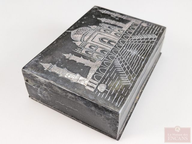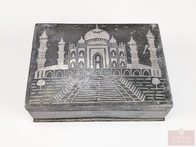 Lot # 78 - Boite indienne en métal Bidriware, représentant le Taj Mahal et mesurant 5 pouces
