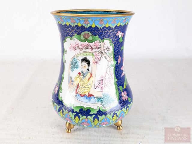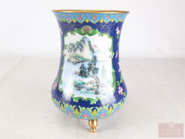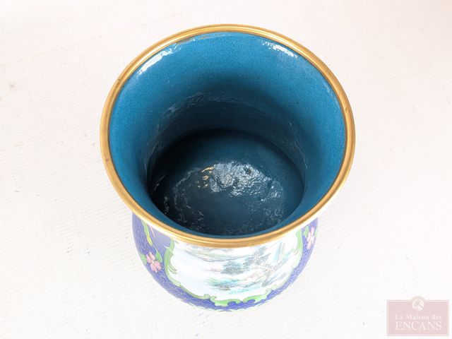 Lot # 6 - Vase oriental en cuivre émaillé peint à la main mesurant 8.5 pouces de hauteur
