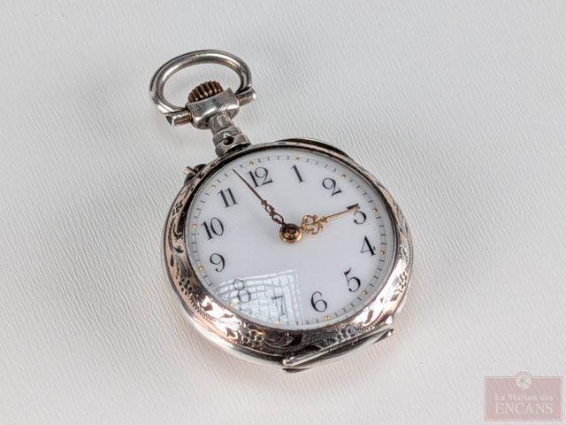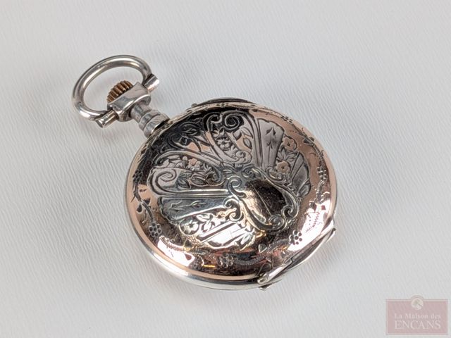 Lot # 100 - Montre de poche française en argent 800 plaqué or, datant du 19eme siècle et mesurant 1.75 pouces, fonctionnelle