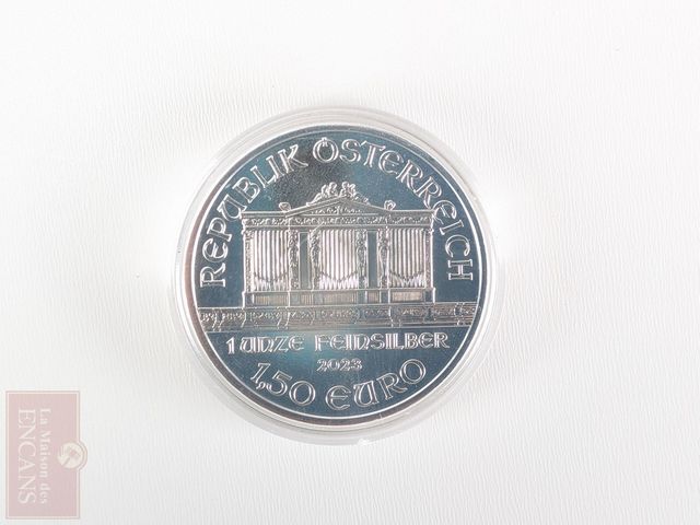 Lot # 194 - Pièce d'une once d'argent pur Philharmonic 1.5 euros 2023, encapsulée, sans taxes SOLD