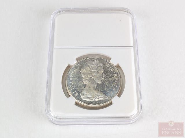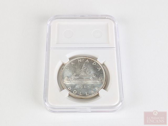 Lot # 211 - Pièce canadienne d'un dollar 1965 en argent, encapsulée SOLD