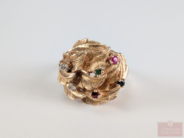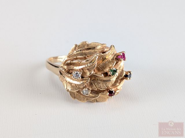 Lot # 224 - Bague en or 14k sertie de rubis, saphir, émeraude et diamants, taille 9.5 SOLD