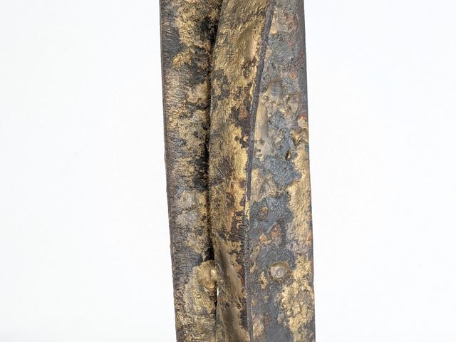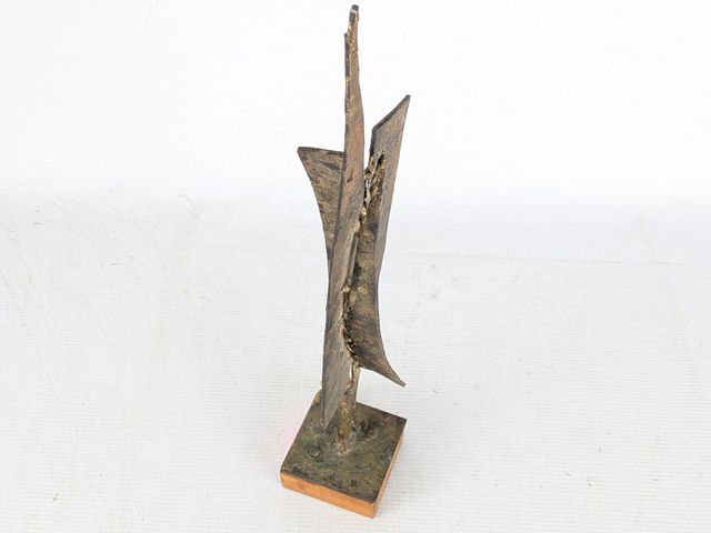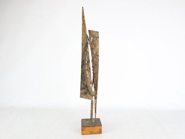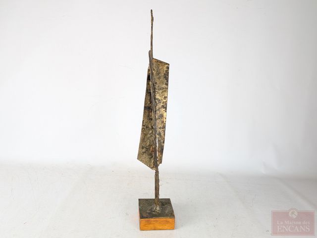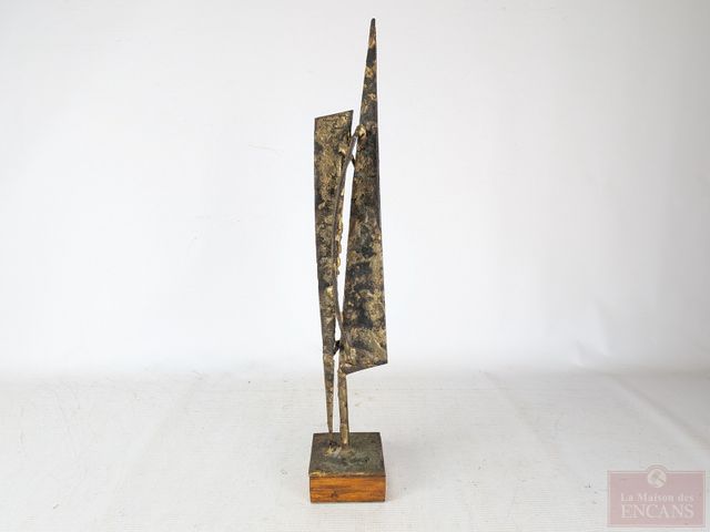 Lot # 199 - Yves TRUDEAU- Sculpture brutaliste en fer patiné doré, circa 1970, mesurant 18.25 pouces de hauteur avec sa base SOLD
