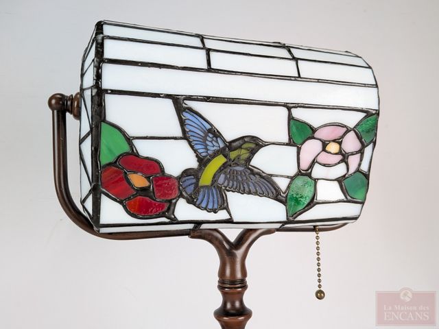 Lot # 148 - Lampe abat-jour vitrail Colibri, mesurant 14.25 pouces de hauteur SOLD