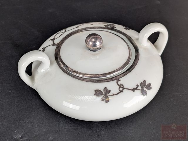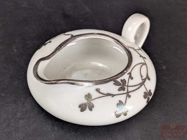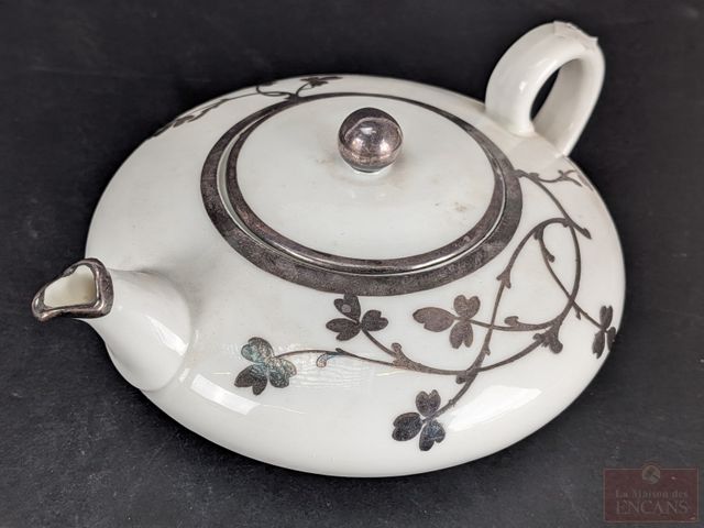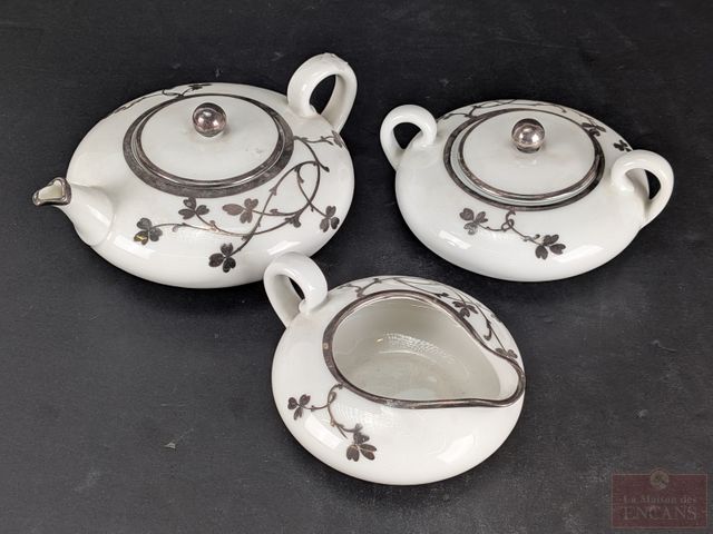 Cafetière, crémier et sucrier autrichiens en porcelaine avec 'silver deposit', la cafetière mesurant 6.25 pouces