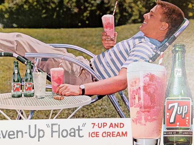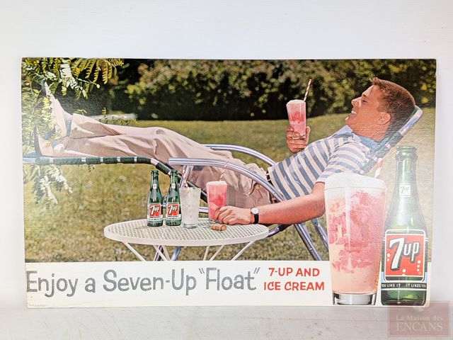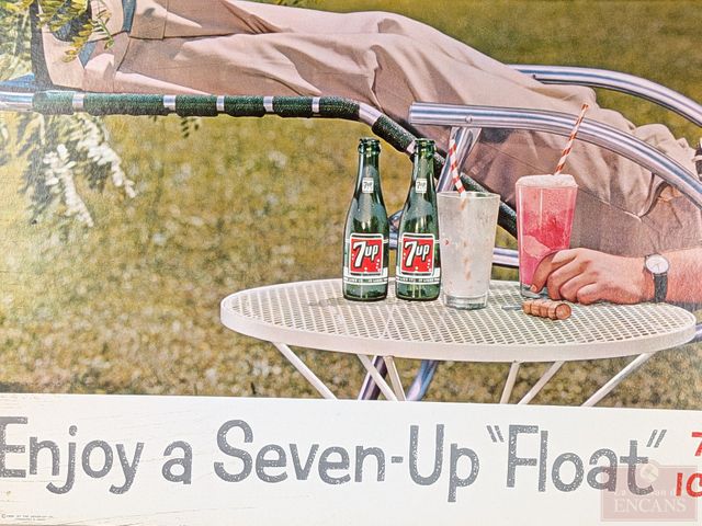 Lot # 11 - Enseigne publicitaire vintage Seven Up en carton, datant de 1959 et mesurant 20.5x33.5 pouces