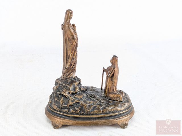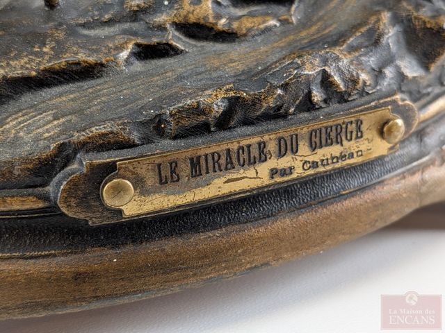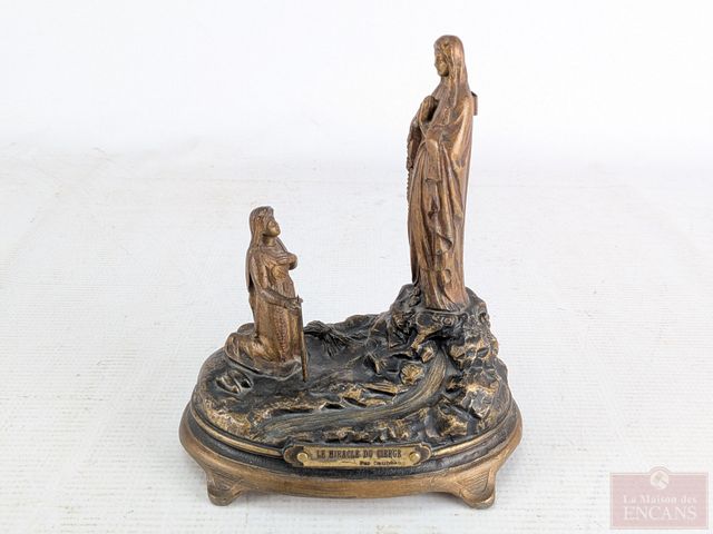 Lot # 160 - Sculpture française en régule par Catinean, datant du début du 20eme siècle, mesurant 7.5 pouces de hauteur et titrée Le miracle du cierge,