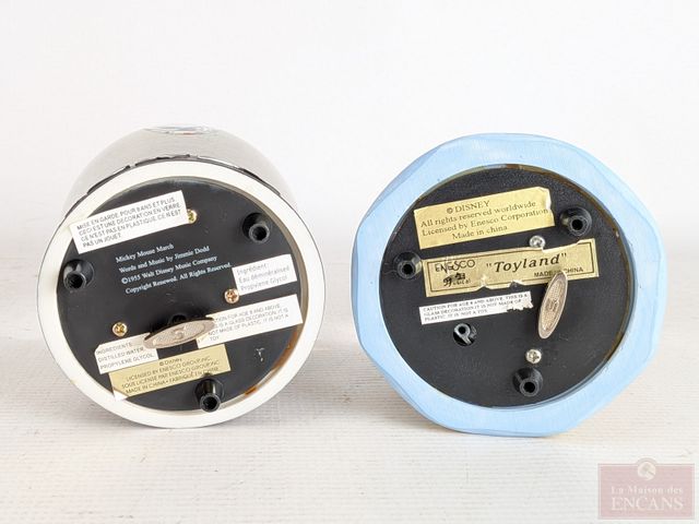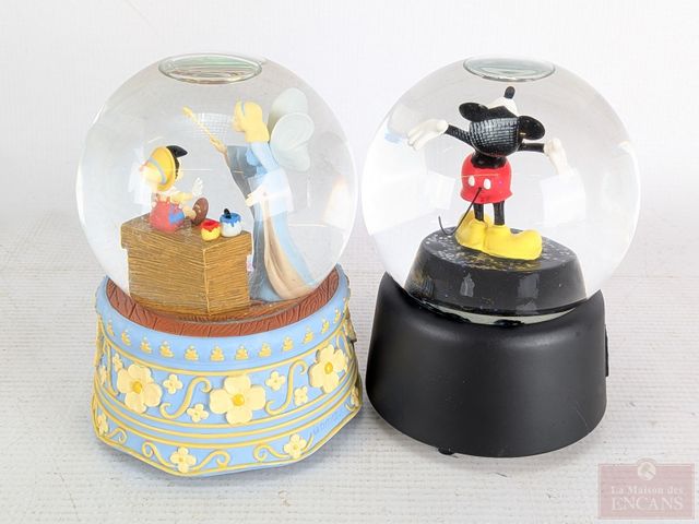 Deux boules-à-neiges musicales officielles Disney, faites par Enesco, la plus grande mesurant 5.5 pouces de hauteur