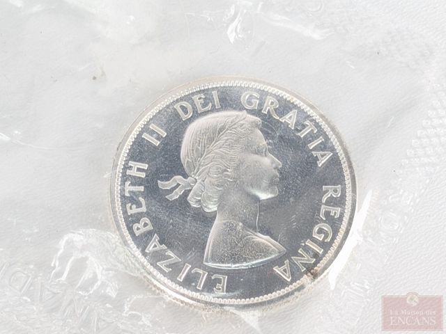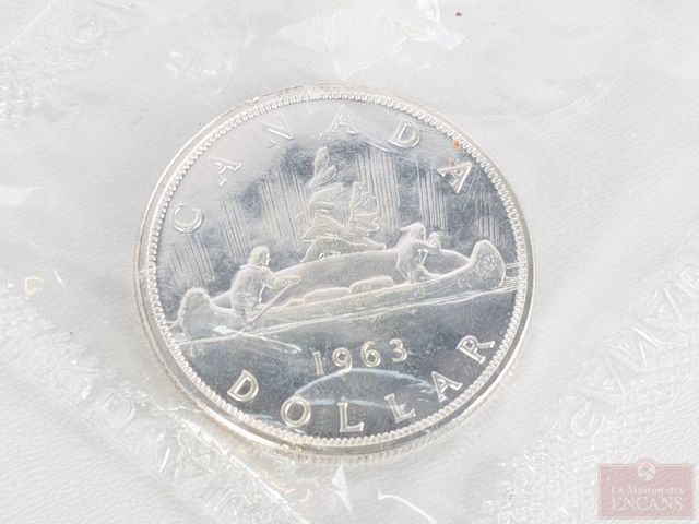 Lot # 100 - Pièce canadienne d'un dollar 1963 en argent proof-like, scellée dans son plastique d'origine