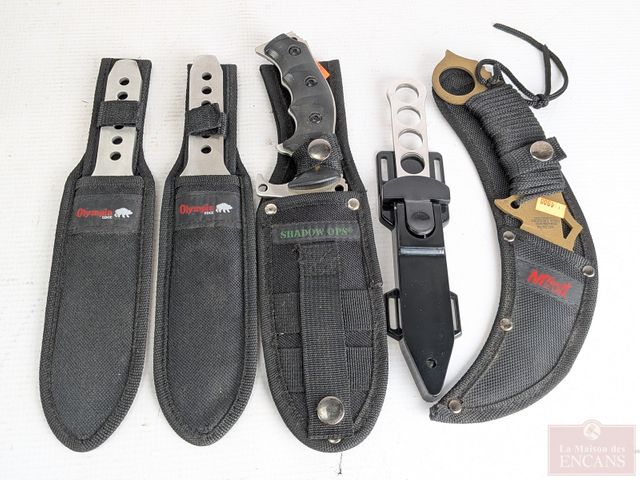 Lot # 95 - Lot de couteaux de combat et couteaux à lancer, comprenant Mtech USA, Shadow Ops et Olympia Edge, le plus grand mesurant 11 pouces de longueur au total
