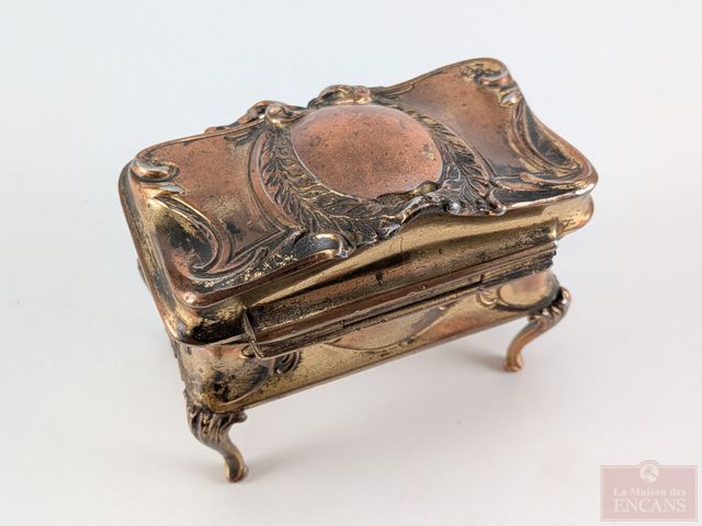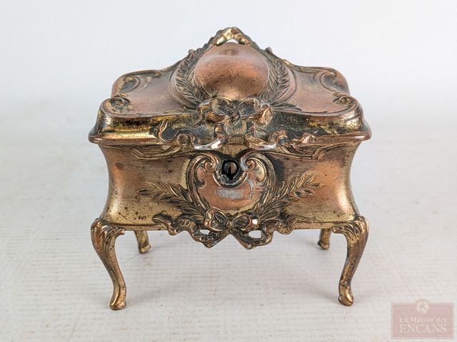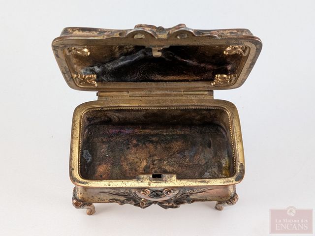 Lot # 65 - Boite à bijoux français en cuivre doré, datant de la fin du 19eme siècle et mesurant 4 pouces