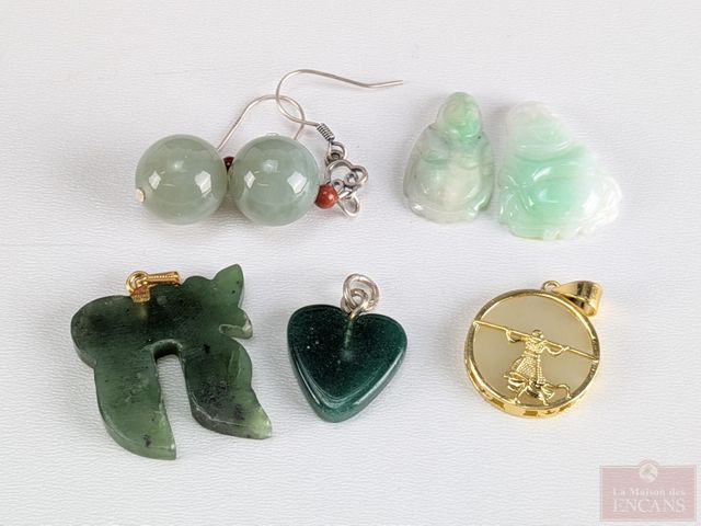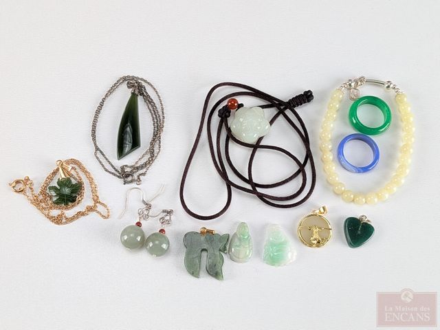 Lot # 183 - Lot de bijoux en jade comprenant bagues, pendentifs, bracelet mesurant 6 pouces de longueur et autres pierres