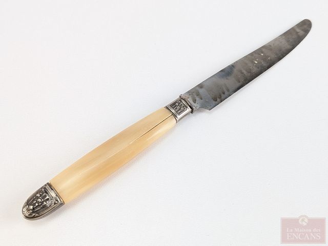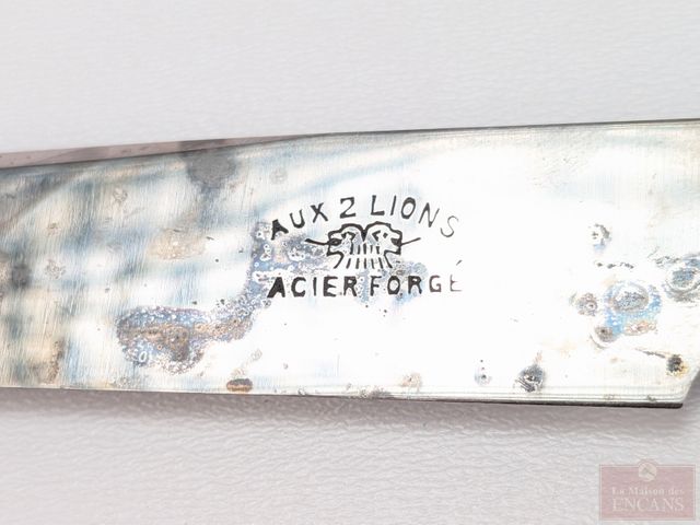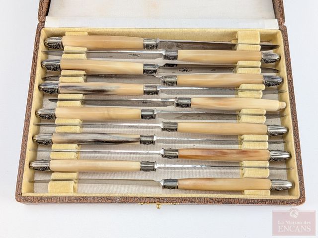 Lot # 85 - Ensemble de couteaux à beurre A.W.X.Z. Lions avec manches en corne de buffle, mesurant 8.25 pouces de longueur au total chacun