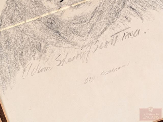 Adam SHERIFF SCOTT R.C.A.- Dessin sur papier signé, mesurant 11x8 pouces et titré Old Fisherman