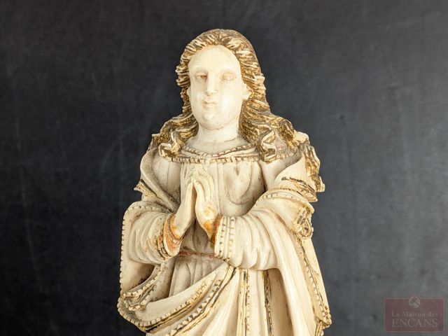 Lot # 86 - Ancienne sculpture portugaise sur ivoire avec base en bois, datant du 18eme siècle et mesurant 9.5 pouces de hauteur