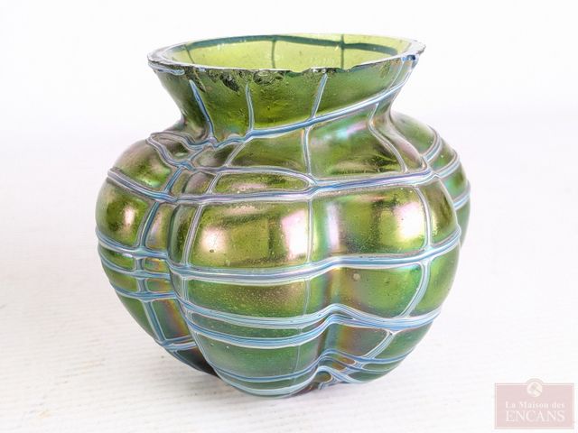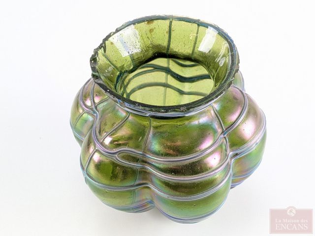 Lot # 29 - Deux vases en verre iridescent Loetz, circa 1900, le plus grand mesurant 4.25 pouces de hauteur (petites ébréchures)