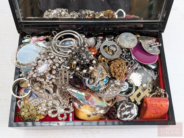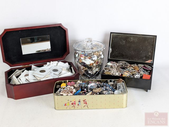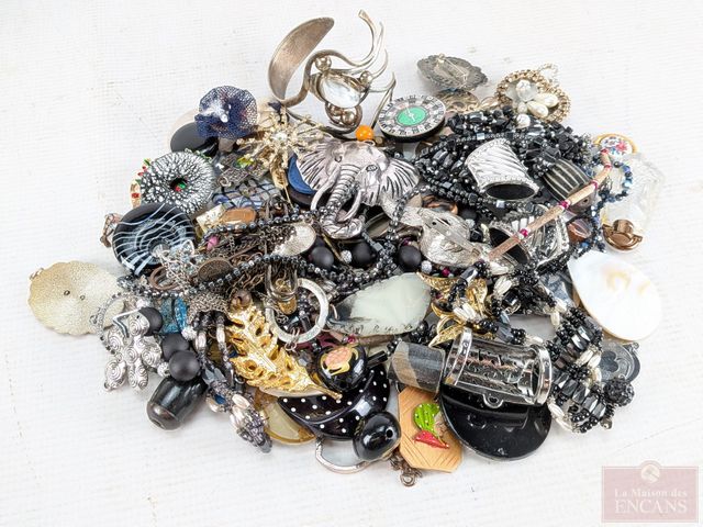 Gros lot de bijoux de fantaisie comprenant colliers, bracelets, bagues, broches et paires de boucles d'oreilles