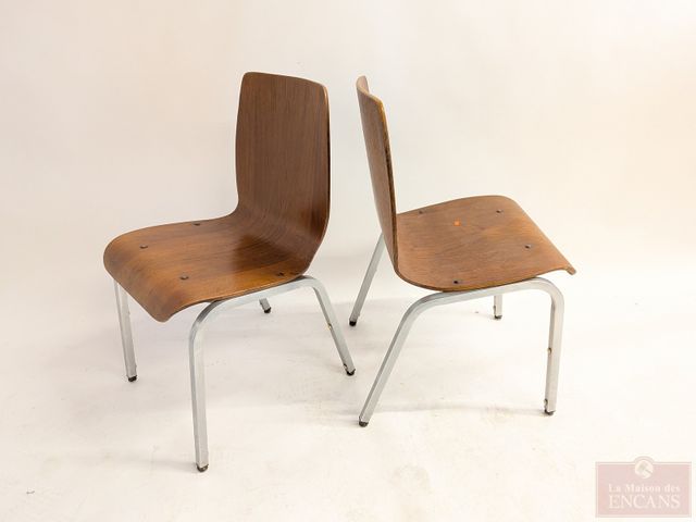 Lot # 152 - Ensemble de quatre chaises vintages en bois et métal chromé, mesurant 31.5x18x17 pouces