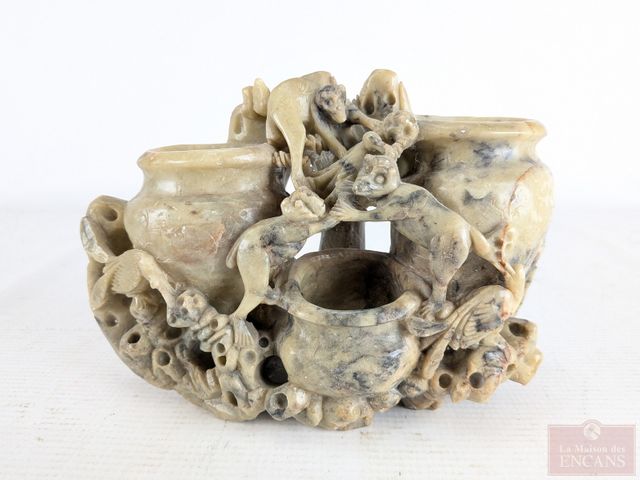 Lot # 33 - Sculpture chinoise sur serpentine, mesurant 8 pouces