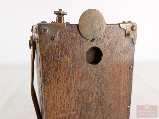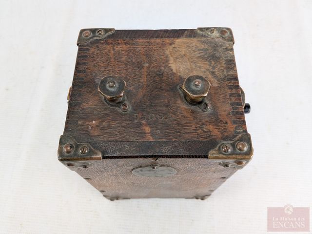 Détonateur de trinitrotoluène en chêne et laiton, datant de la fin du 19eme siècle et mesurant 9 pouces de hauteur