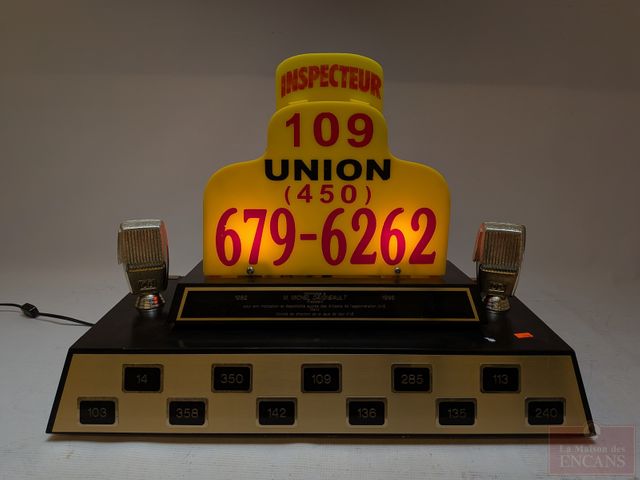 Lot # 121 - Trophée lumineux Taxi Union offert à Michel Daigneault, président du comité de direction de la ligue de taxis A-2, datant de 1996 et mesurant 23 pouces