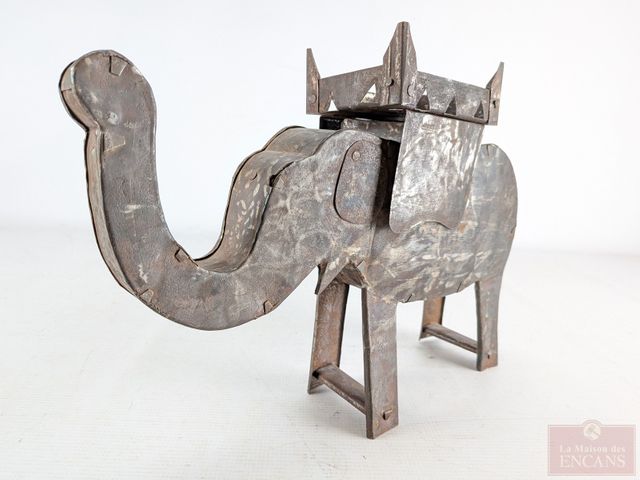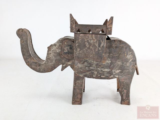 Sculpture orientale en métal, représentant un éléphant, datant du début du 20eme siècle et mesurant 15 pouces