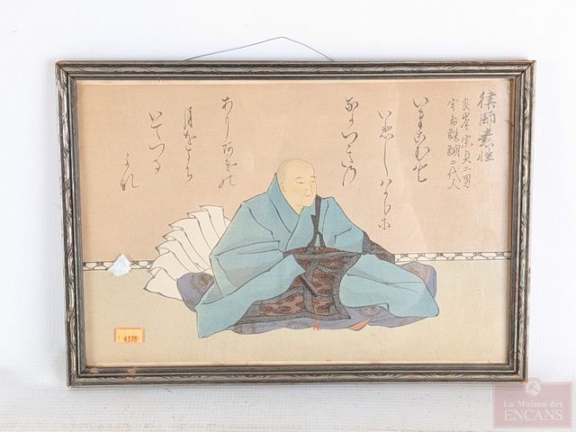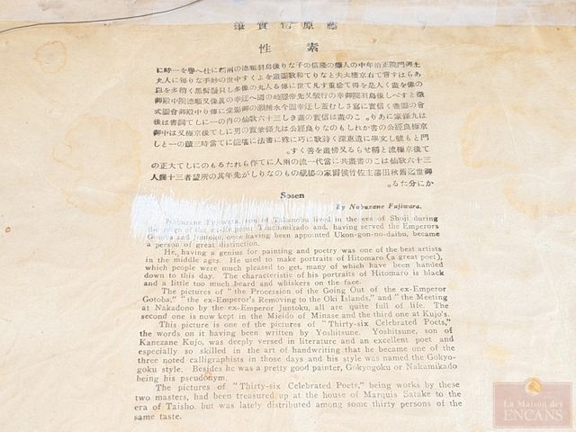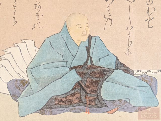 Lot # 37 - Nobuzane FUJIWARA- Woodblock japonais représentant le poète Nobuzane FUJIWARA datant de la période Taisho (circa 1920) et mesurant 8x12 pouces