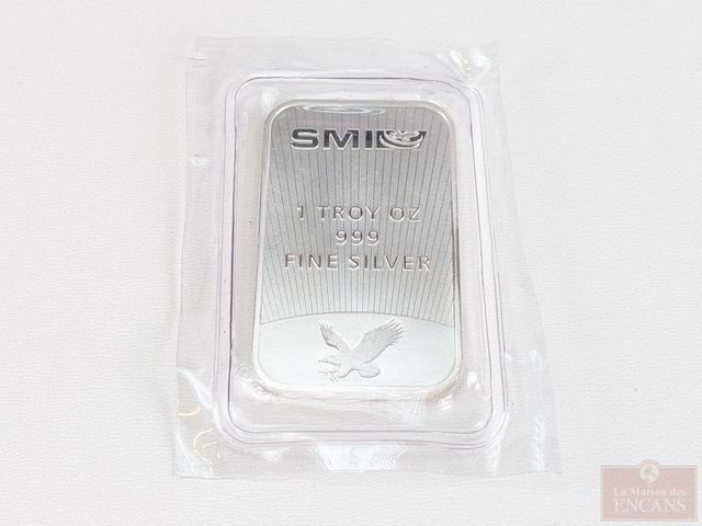 Lot # 93 - Lingot d'une once d'argent pur 999 SMI, scellé, sans taxes